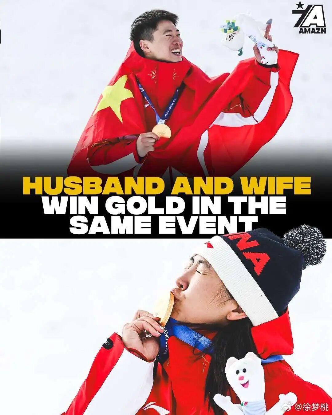 两个人,成为冬奥会94年历史上,首对同届同项目夺冠的夫妻。