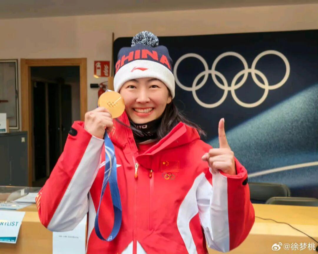 她说:“恭喜你徐梦桃,你是自由式滑雪空中技巧历史上第一个卫冕冬奥会冠军!”
